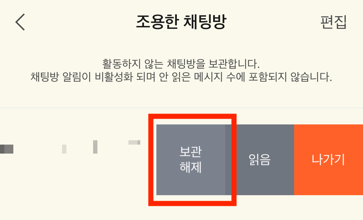 보관해제 를 누르면 채팅방의 원래 위치로 돌아간다.