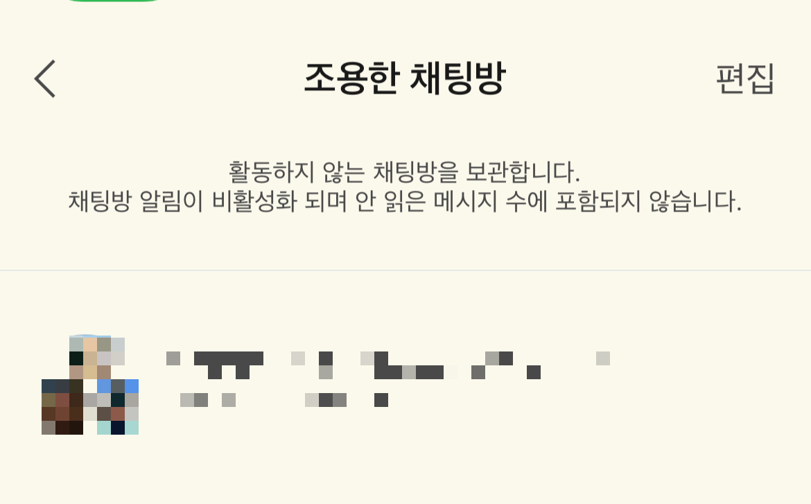 6) 채팅 리스트 상단에 조용한 채팅방이 생성된다.