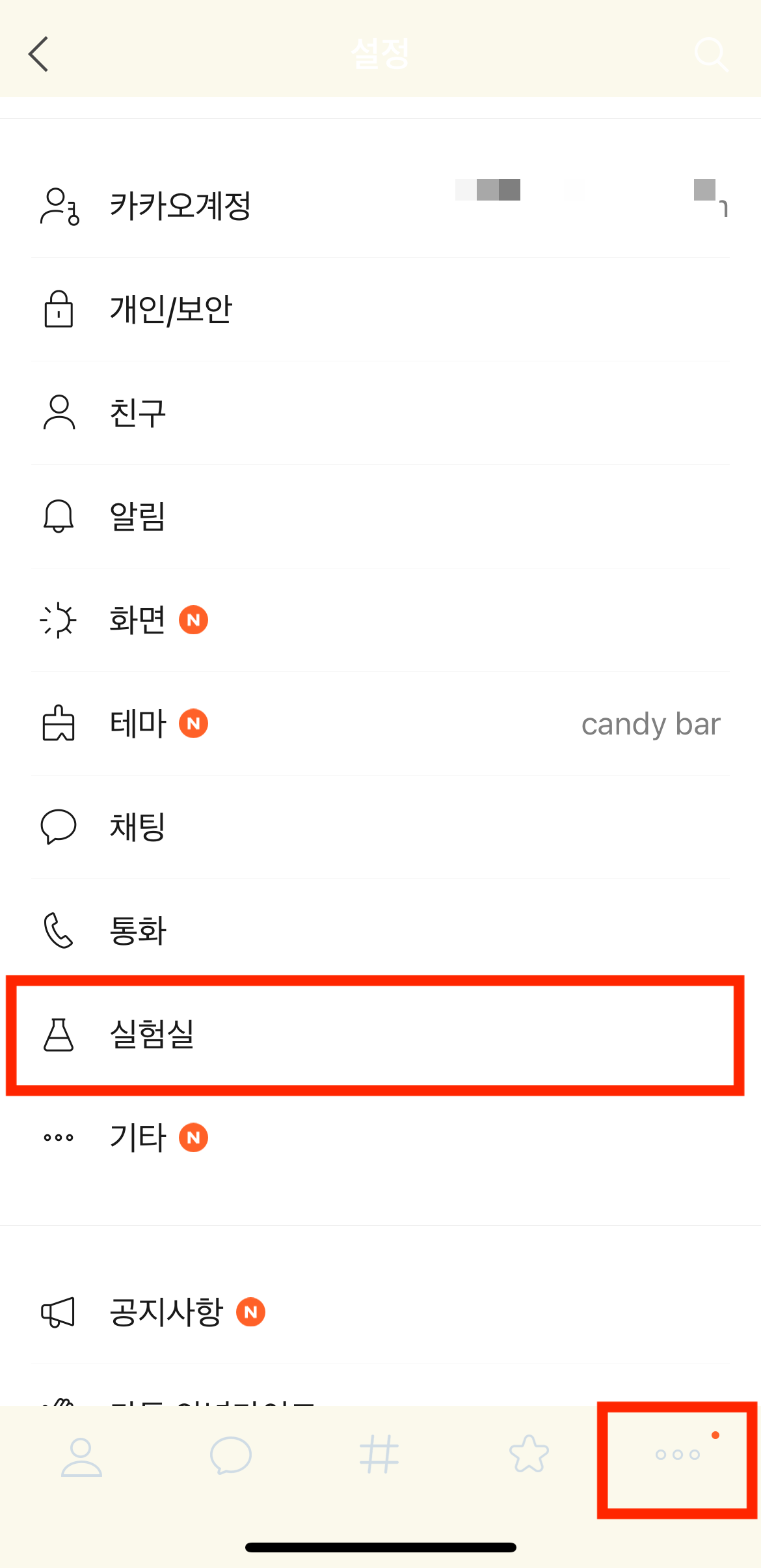 2) 업데이트된 카카오톡에 접속을 하면 오른쪽 하단에 ... 을 클릭한다.