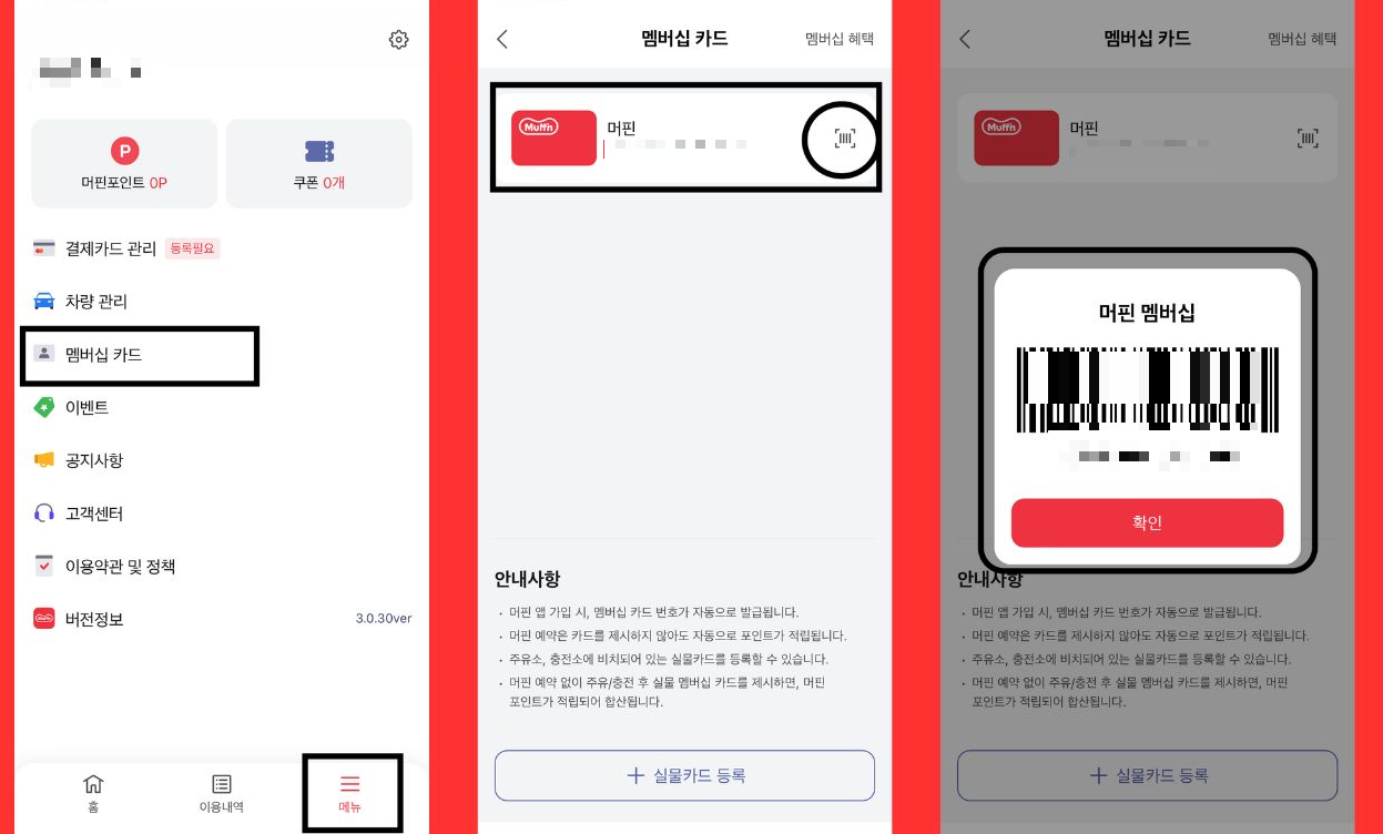 머핀 회원가입을 하면 자동으로 멤버십 카드가 앱으로 발행되니 따로 발급받을 필요가 없습니다.