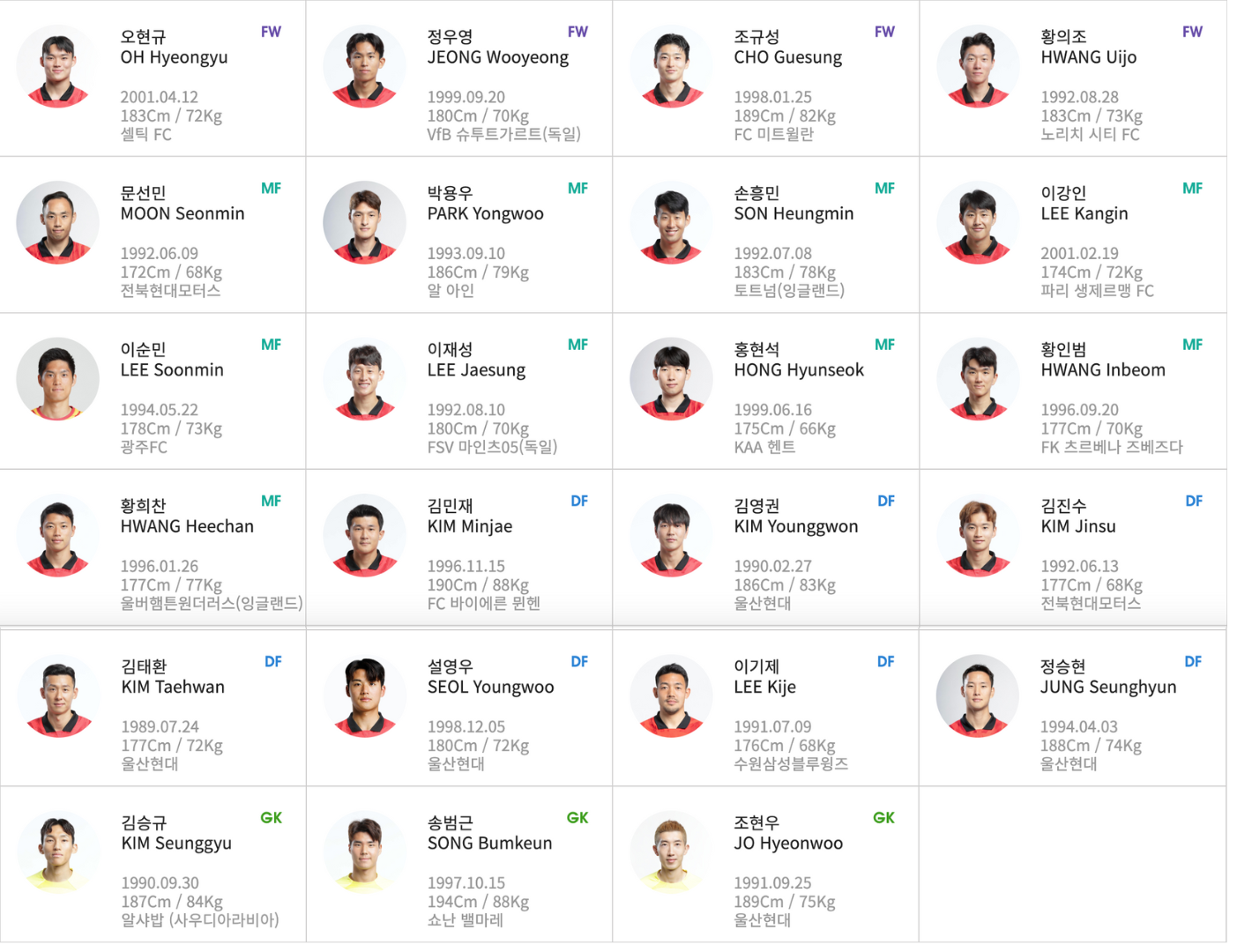 다만 해외파 선수들의 경우 저번 9월 A매치를 뛰고 난 후 2달만의 귀국이라 체력적으로 힘들 것으로 예상됩니다.